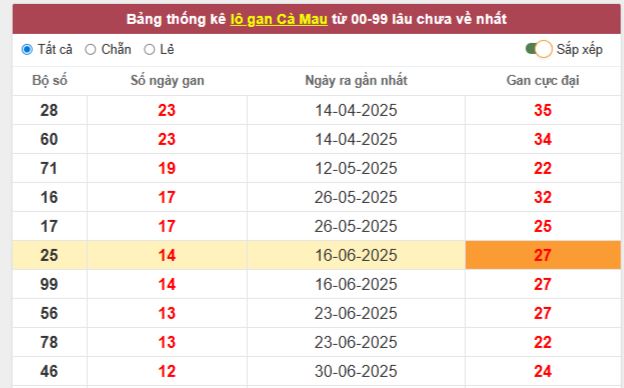 Thống kê xổ số Cà Mau ngày 29/9/2025